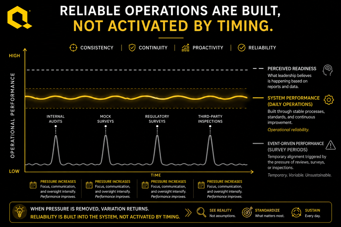 Our mission is to empower Nursing Facilities with a fully integrated Quality Management System (QMS) that transforms regulatory compliance into operational excellence—by providing structure, tools, and analysis that improve care quality, staff performance, and customer satisfaction.